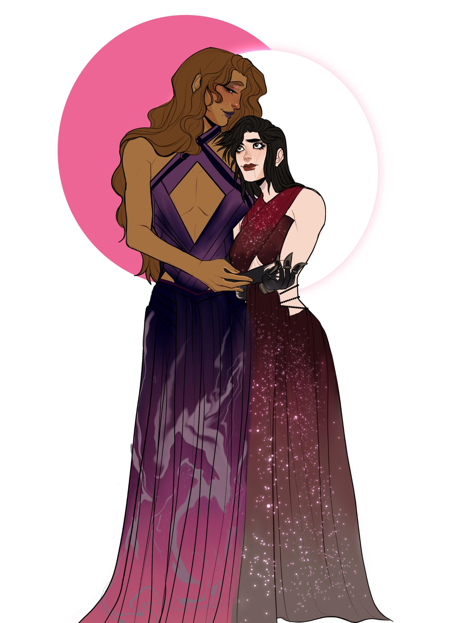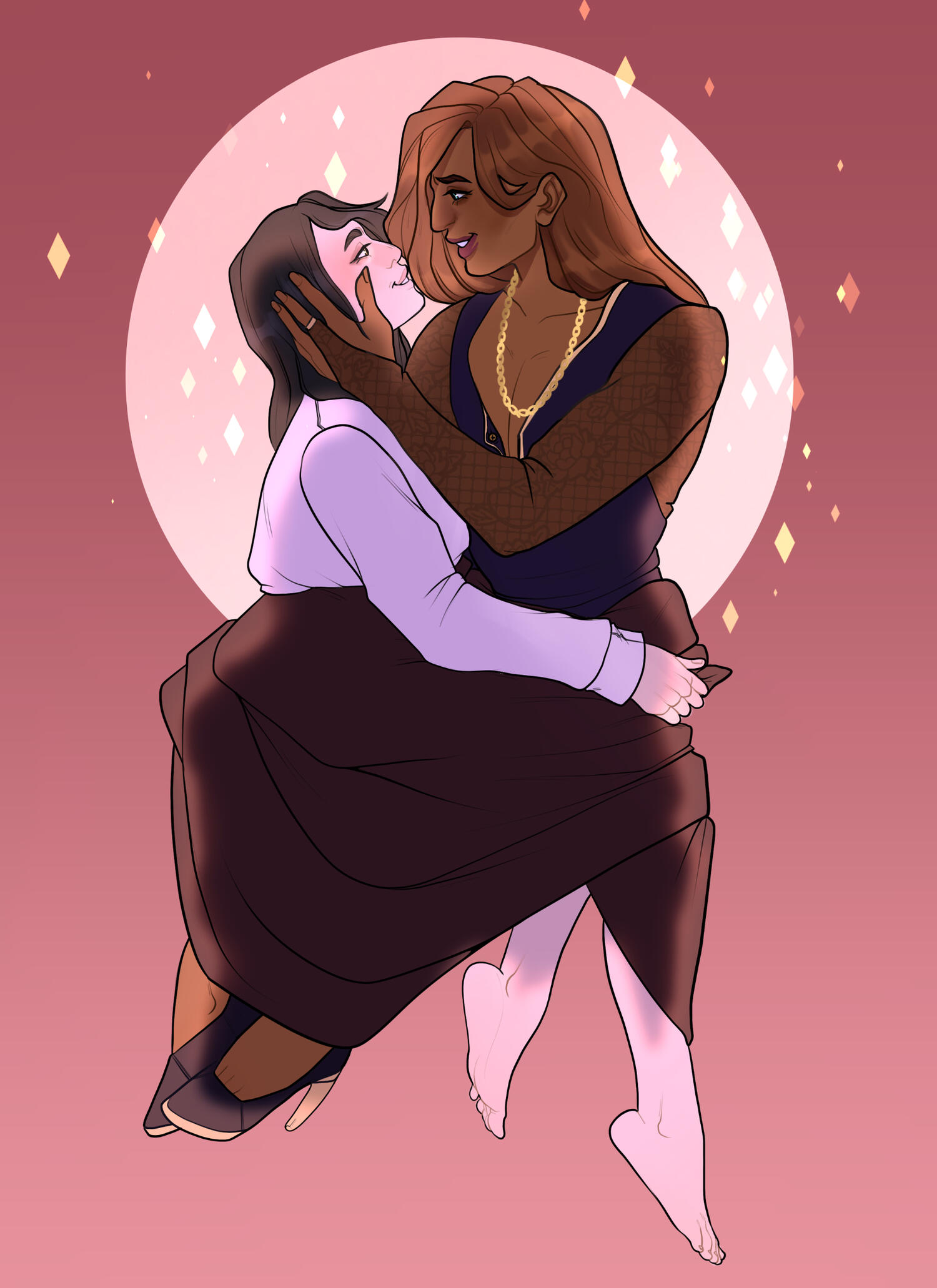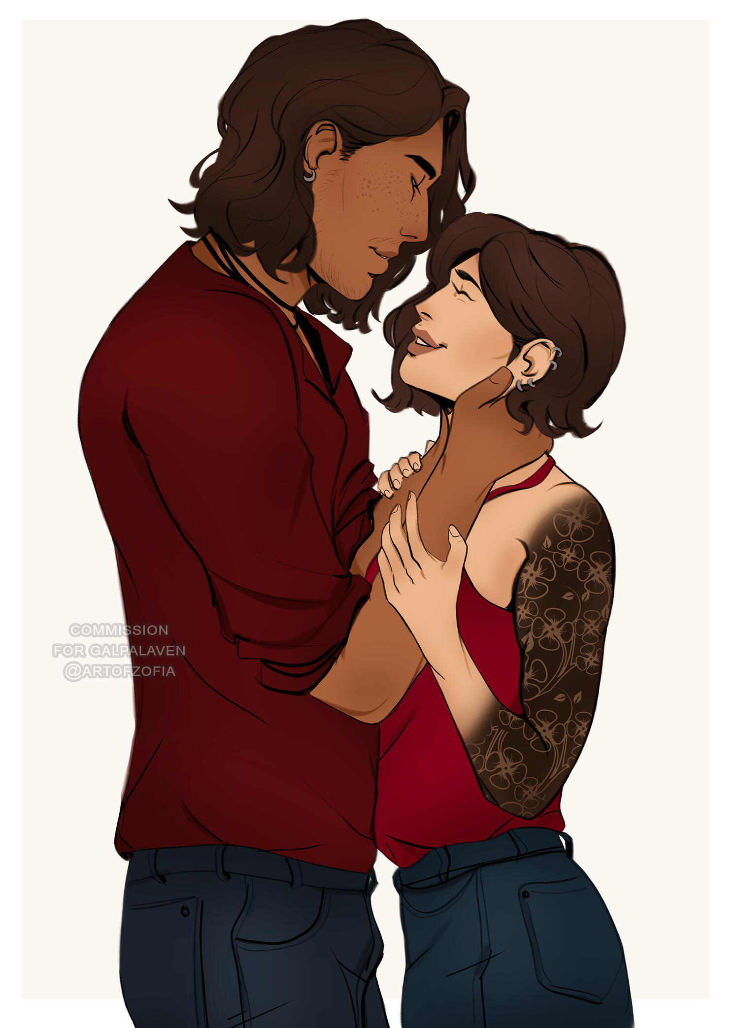 Their eyes are on her lips.Their eyes are on her lips and they aren’t looking away. She’s pretty sure they hadn’t meant to look there, they hadn’t meant to linger, not in the midst of the discussion about why they can’t and how they don’t want to do this — but it’s happened anyway. Their own lips part, an inhale like they’re about to say something, but nothing comes out, and their jaw snaps shut again.Their eyes are still on her lips.“Sol…?”There’s a blush blooming on their ears as they watch her mouth move, watch her throat move as she swallows against the sudden dryness of her tongue. She wants to ask them what they’re doing, why they won’t look at her eyes, but another, much louder part of her just wants to see what happens next. It makes her quiet, calm, and she remembers the time she and Sol had been out by the lake and a group of deer had come out of the woods. They’d sat together watching them slowly get closer, eased by their quiet, by their stillness, until a fawn had been curiously sniffing at her hair, and they’d both been giggling. It’s the same quiet now, the urge not to startle, the fear that one wrong move will send them running away, forever just out of her reach.She’s afraid to break them, to break what they have — but she can’t help the part of her that wants to all the same.That familiar, pained pinch is back between their brows, but their eyes don’t move as they let out a shaky sigh. Their hands settle on her knees — bracing themselves or to keep her still, she’s not sure — and they squeeze gently as they mumble a word. Just one word.“Phae…”Her hands settle over theirs on her legs, and they take in another shuddering, halting breath. There’s something unfamiliar swimming in their dark eyes, a desire, a wanting, that she doesn’t know what to do with. She can see the gears turning in their mind, the warring within themself. One part of them obviously wants to stop this, to pull away and put that careful wall between them back where it always is — but another part is desperate to give in. To cross that line that they’ve both been so careful not to cross.She can see it there, even as they press their forehead against hers and squeeze their eyes shut. They don’t want her to stop — not completely. A part of them wants to keep going, to take that last step, that last leap of faith, to ruin their friendship, crush it, shatter it, burn it, until all that’s left is ash and dust to be scattered in the breeze.Hesitantly, Phaedra lets herself lean in just a little, tilting her head until their noses brush against each other, Sol’s breath hot as it washes over her mouth. Their fingers are almost clawing at her thighs now, and she runs her thumbs across the back of them soothingly, running over the little jagged scars that crisscross what would be — should be — soft skin. Their breath hitches in their throat, coming a little faster now.“Don’t,” they whisper. Their voice is pained and soft, and even as they mumble this into her lips like a prayer, they do nothing to stop her, to pull away.In fact, their hands slide upwards on her legs, forehead pressing harder to hers as they lean against her. The first delicate brush of her lips against theirs has both of them trembling, and it’s not like this is the first for either of them but she thinks it might as well be, the way her whole body feels like it’s about to start shaking like a leaf. She tilts her head, lips parting, trying to find just the right angle so that their lips can fit together like matching puzzle pieces. Her lower lip catches on theirs briefly, and their lips fall parted as hers drags theirs downward.And then she kisses them, closing that last tiny gap, slotting their lower lip between hers as she does.And they kiss her back.Both of them take a breath in through their noses as their lips press together, something intimate about the shared breath between them. The kiss breaks a moment later, but neither of them pull away, and — like they always do, because they are Sol and Phae, and they are never long without the other — they come back together again, this kiss a little more solid, a little more sure.A rhythm starts without either of them really meaning to, she thinks. It’s as natural as breathing, to tilt her head, adjust the angle, switch to kissing their top lip instead, because it deserves her kisses just as much as their lower one. It’s easy, and simple, and soft, until it isn’t. Until the heat in her cheeks is spurring her in closer, and she shifts, not pulling away, and Sol moves with her, moves closer, tilting their head as they bring their mouth back to hers, a little harder this time. Their kisses grow in intensity like a pot left to boil — a slow simmer that builds and builds and builds until there is nowhere left to go but up and over.There’s something in the way they press back against her that has her mind reeling — an unspoken emotion finally coming to light in a way that she’s not sure they’ll ever be able to tell her out loud. There’s a brief moment of hesitation when they pause, both of their mouths open and brushing each others, and she can feel the apprehension, the nervousness, in Sol’s frame before they seem to make up their mind about something and close the gap again.They make a soft, almost pained noise when she guesses at what they were thinking and her tongue meets theirs halfway.The next opening of their mouth against hers is wider this time, both of them tilting their heads, curious tongues slipping against each other, and it sends a hot shock of pleasure down her spine, turns into a shiver and a quiet whimper. The thought of being here like this — of doing this — with Sol is enough to have her melting against them, skin flushed, heart pounding a quick, fluttering rhythm in her chest.Unbidden, memories of nights alone in her room come to mind, cautious fingers beneath the covers, 